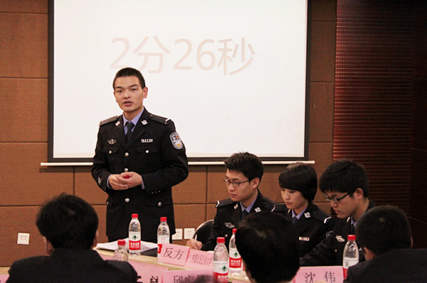 本场决赛的辩题为“法律有情还是法律无情”,我院研究生辩论队为正方,持法律有情的观点,中国人民公安大学研究生辩论队为反方,持法律无情的观点。19点30分,经辩论赛主席介绍赛制情况后,第四届北京高校法科研究生辩论赛决赛正式打响。