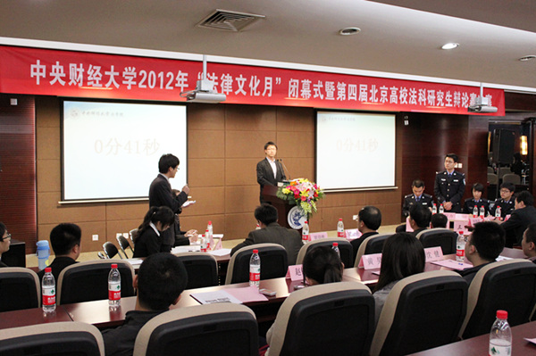 至此,第四届北京高校法科研究生辩论赛圆满结束,我校2012年“法律文化月”也随之落幕。该辩论赛是北京市各高校法科研究生之间的传统赛事,至今已成功举办过三届,此次是我校首次承办,自今年3月初以来,法学院研会全体成员积极投入该大赛的筹备和协调工作中,先后举办初赛、复赛、半决赛、决赛共计四轮十一场比赛,邀请评委37人次,得到了北京大学、清华大学、中国人民大学、北京师范大学等9所首都知名高校法学院系研究生会的支持与参与,参赛队伍数量为历届之最,经过精心的筹备和细致的组织,第四届北京高校法科研究生最终圆满落幕,中央财经大学法学院研究生会的组织工作得到了首都兄弟院校法学院系的认可和好评,与此同时,中央财经大学法学院研究生辩论队也不辱使命,创造了法学院研究生活动的一项完美纪录。