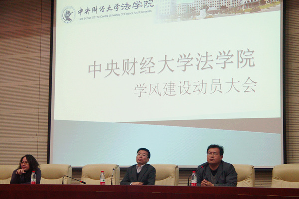 3月14日15:30,法学院学风建设动员大会在学术会堂202报告厅顺利召开,法学院2009级、2010级全体硕士研究生同学到场参加,院党总支书记李岩老师、副院长吴韬老师及院长助理尹飞老师出席大会并讲话。大会伊始,吴韬副院长首先向同学们介绍了本学期学院学风建设的相关政策与工作安排,强调了学风建设的严肃性和重要性,重点指出学院将坚持不懈的紧抓学生学风,争取在一段时间内取得明显的工作成效。接着,李岩书记与尹飞老师分别就学院学风建设的具体问题发表讲话,着重强调了课堂纪律、课程考勤、学术规范及学习态度等问题,希望同学们能够重视学风建设,培养良好的学习习惯和研究能力,努力做一名优秀的硕士研究生。