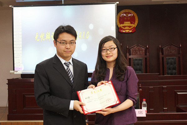 评委为本场最佳辩手正方四辩杨健同学颁奖