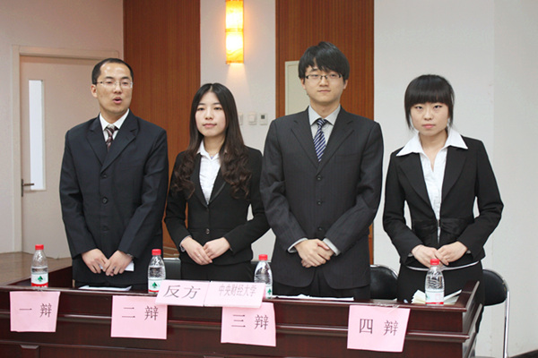 据悉,中央财经大学2012年“法律文化月”闭幕式暨第四届北京高校法科研究生辩论赛决赛初定于本月25日举办,辩论赛决赛辩题为“法律有情还是法律无情”,我院研究生辩论队作为正方将与反方中国人民公安大学研究生辩论队争夺本届辩论赛的冠军。法学院网站及相关海报宣传届时将公告辩论赛的具体时间及举办地点,欢迎校内外师生前往观赛。