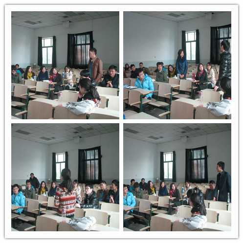 11月27号上午十点在主教306教室, 2012级法律硕士(法学)班与2011级法律硕士(法学)班的四名学生代表进行了交流,班主任蒙广平老师主持交流会。