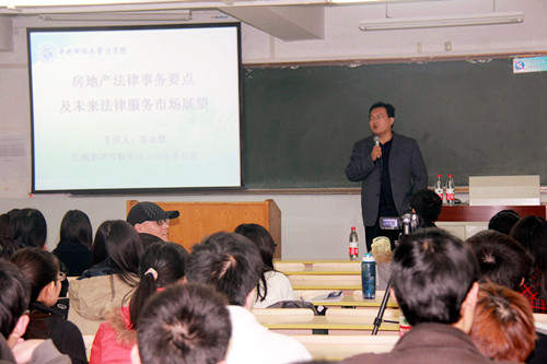 11月15日下午15:30,法律实务论坛第一讲——“房地产法律实务要点及未来法律服务市场展望”主题讲座在主教403开展。亿城集团有限责任公司法务总监秦永慧先生受邀作为主讲嘉宾,法学院尹飞教授主持了本次讲座。