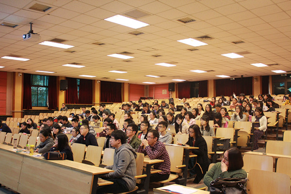 随后,钟老师以表格的形式详细介绍了2013届硕士毕业生就业地区流向,并对面试中时常出现的问题进行讲述。钟老师指出,现今企业多采用无领导小组讨论的面试方法,即将面试小组成员分为领导者、计时者、记录者与协调者。四种角色,分工各不同。领导者要求了解组员信息,引导组员分工,以及控制讨论流程。计时者需进行时间管理。记录者要求记录清晰,明确重点。协调者则要负责调动团队气氛。无领导小组讨论的评价标准包括五点,分为礼仪、个人魅力、言语表达、应变能力以及逻辑分析能力。钟老师希冀同学们在正式面试之时一定要积极争当领导者,勇于并善于展示自我。