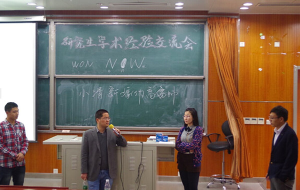 杨康同学巧妙构思,于经验介绍环节的尾声将自身经验总结为“小清新嫁(价)高富帅”这样新颖的主题,分别从一篇论文的撰写所需要的具体、清楚、新颖、价值、高度、充实和亮点等七个要素,详细地向同学们分享了他对于论文撰写的深刻体会。在整个经验介绍环节中,三位同学妙语连珠,严谨求实,具化主题,以身为证,用精彩的发言引得台下听众频频点头赞同并报以热烈的掌声。