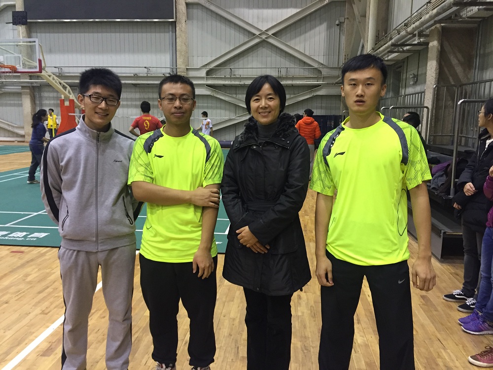 我院研会牵头参与本届比赛,与本科生联合组成法学院战队。这是我院研究生首次参加该项目比赛,也是本届羽毛球赛所有参赛队伍中唯一一支有研究生参战的队伍,参赛的研究生分别来自2013级尹力沉、2014级的徐帅和2015级裴添同学。本次比赛得到了学院的重视和支持,在队伍组建、人员配置、后勤保障方面所给予了大力支持。蒙广平老师当晚到场为同学们助威。