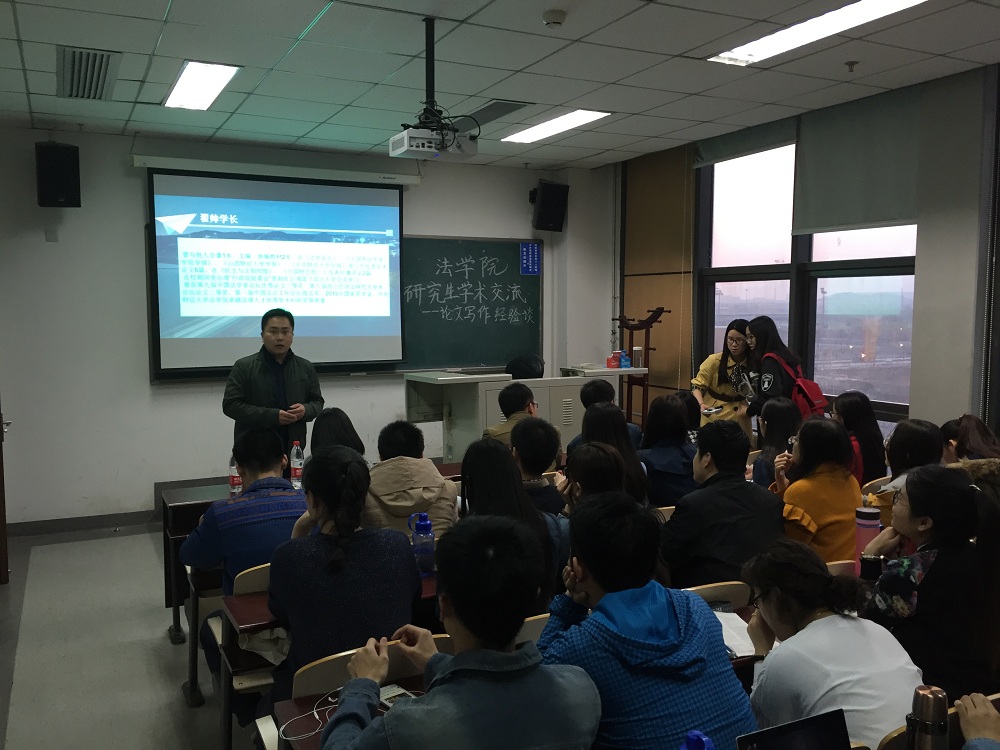 3月30日晚6点30分,由院研究生会举办的“论文写作经验谈”学术交流活动在沙河校区主教501举行。主讲人分别为2013级法学博士研究生翟帅、2013级民商法学硕士研究生卢影、2013级法硕(非法学)研究生刘冰心。他们分别获得过法学会论文大赛、挑战杯论文大赛等奖项。