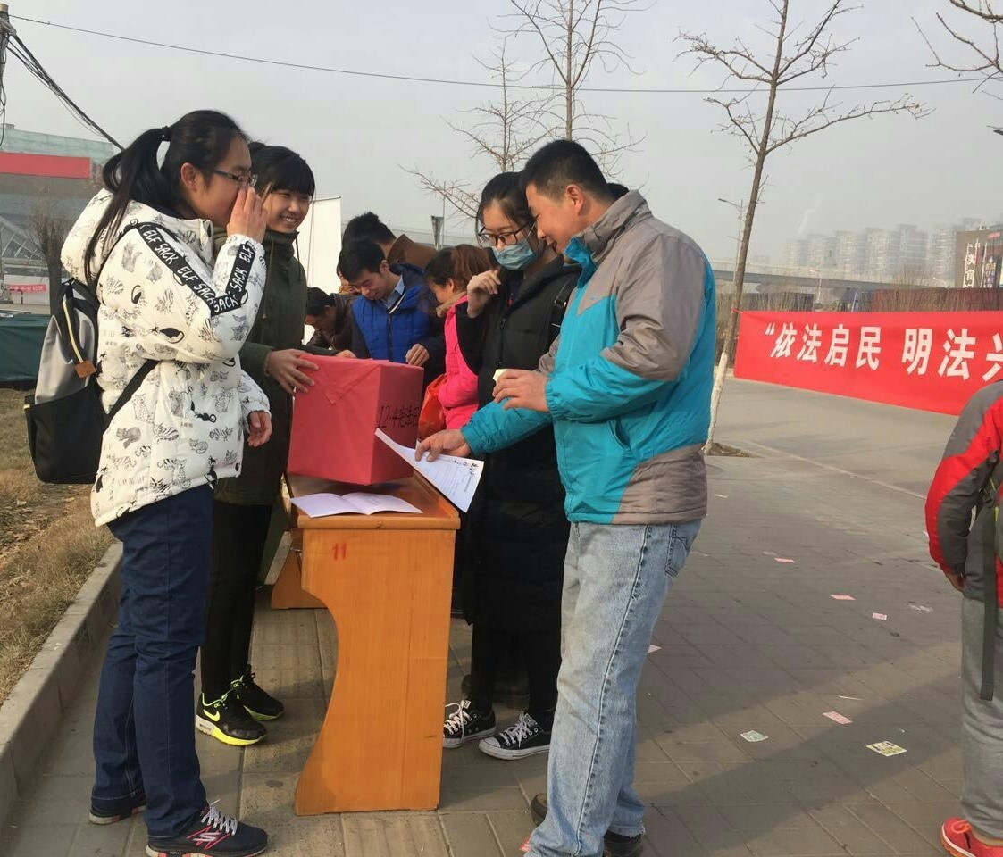 2016年12月4日是第三个国家宪法日,也是第16个全国法制宣传日,法学院研究生会与法学院团总支学生会共同开展了以“依宪启民,明法兴邦”为主题的社区宪法宣传活动。本次社区普法活动地点设在人流密集的沙河地铁站口,由我院研究生会与学生会及其他积极参与的同学组成普法宣传小组,向来往的人们发放宪法宣传手册,并举行法律知识有奖竞答、快速拼图、法制宣传横幅签名等活动。本次普法活动旨在以丰富多彩的形式,促进群众对宪法的理解,增强其法治观念和法律意识。