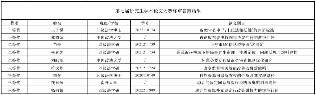 我院高度重视每年举办的研究生学术论文大赛,其作为创新卓越法律人才培养机制,已经成为中财法学院训练法科研究生学术研究和写作能力的重要平台。