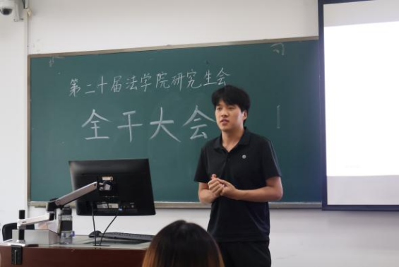会议第一项,主席团成员郭金麒、张沛对研会工作做概要介绍。他们首先对2024级新生干部的加入表示欢迎,并介绍了法学院研会的定位、组织结构、工作内容以及各项要求。此外,他们提出在下一步的工作中,应当以制度建设为突破口,建立完善干部沟通、部门协作、监督问责等各项机制,确保研究生会高效、稳定运行。