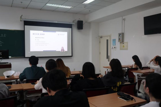 叶芝同学系统介绍了文体部的部门职能,即组织、协调并指导学院文体竞赛活动等。赵世清同学介绍职业发展部未来将要开展职业规划与就业发展的相关活动。刘瀛子同学对学术实践部的各位同学提出“服务大家、完善自我”的要求,希望大家可以在工作中收获知识与成长。