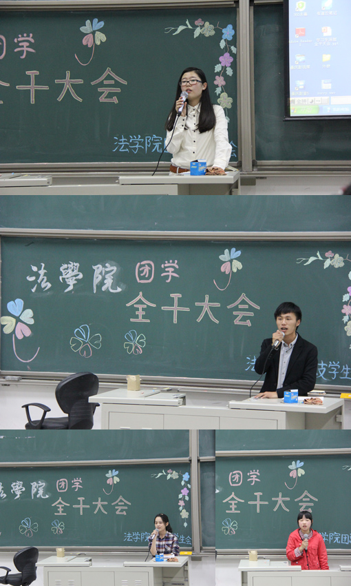 10月23日晚,我校法学院团总支学生会全体干事大会在东区主教216召开,这次大会以介绍新干事为主要任务,旨在拉近新老干事间的距离,增进彼此间的感情。