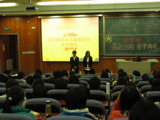 团总支书记李炎在发言中介绍了基础团校的目的和意义,他同时为团校学员确立“软目标”和“硬目标”,希望学生骨干继续提高政治思想素质和理论素养,进一步提升自己的组织、管理、协调、决策能力。李炎老师最后宣布基础团校正式开学,全场报以热烈掌声。
