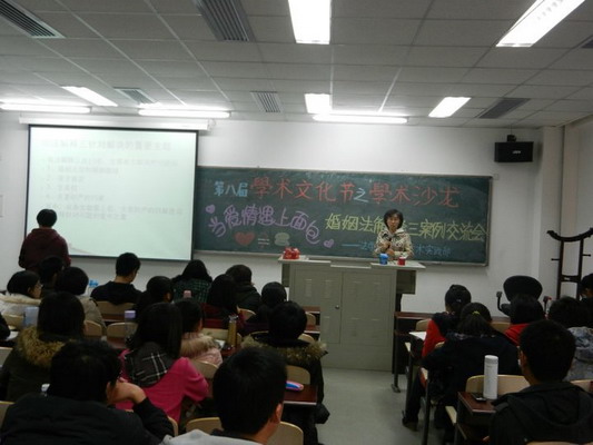 11月16日下午,我校第八届学术文化节之学术沙龙在沙河校区4号楼214举行我院阳平副教授在应邀就婚姻法司法解释的若干问题与同学们做了深入的交流,我院团总支书记李炎老师参加了此次活动。