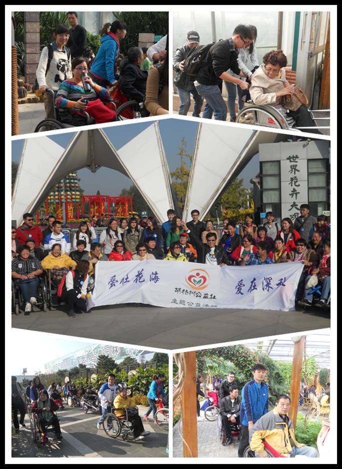 本次志愿活动由我院青年志愿者协会策划组织,学院给予了大力支持,同学们积极报名参与,每一位志愿者都以饱满的热情去关爱残疾朋友。志愿者们清晨7点出发,历经两个小时的路程,终于在9点到达此行的目的地——世界花卉大观园。
