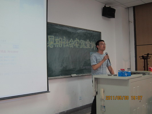 李树荣同学讲解了暑期社会实践活动的背景及对学生成长成才的重要意义,并结合本次暑期社会实践活动的主题,就如何选择实践主题、如何组建团队、如何撰写标书和总结报告等问题与同学们分享了他以往的经验,李树荣同学特别提示了实践中人身和财产安全的注意事项。李树荣同学以其热情、大方的态度和幽默诙谐的语言赢得了同学们阵阵掌声。