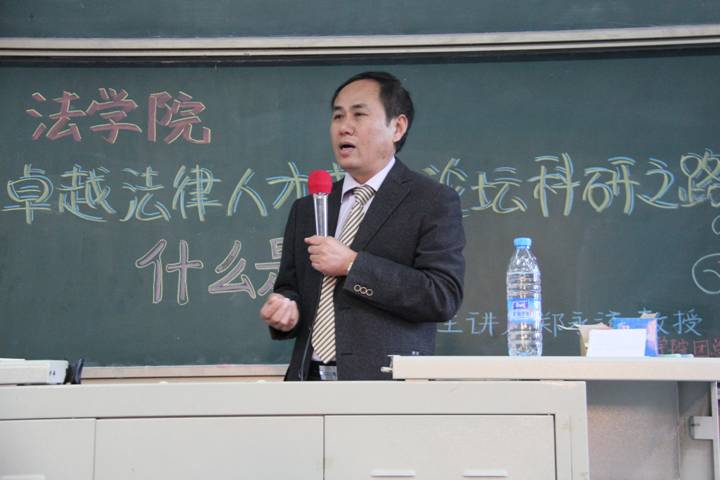 10月29日下午3点40分,我院卓越法律人才成长论坛系列讲座——“什么是法学”,在学院3号楼222教室举行。本次讲座的主讲人为来自中国政法大学的郑永流教授,郑永流教授在法学领域的研究广泛而深入,是新中国成立后第一位获得法理学博士学位的优秀学者。我院党总支书记李岩老师、李伟副教授、赵真博士、团总支书记李杰老师出席了本次讲座。本次讲座由我院院长助理李伟副教授主持,我院本科学生积极参与。