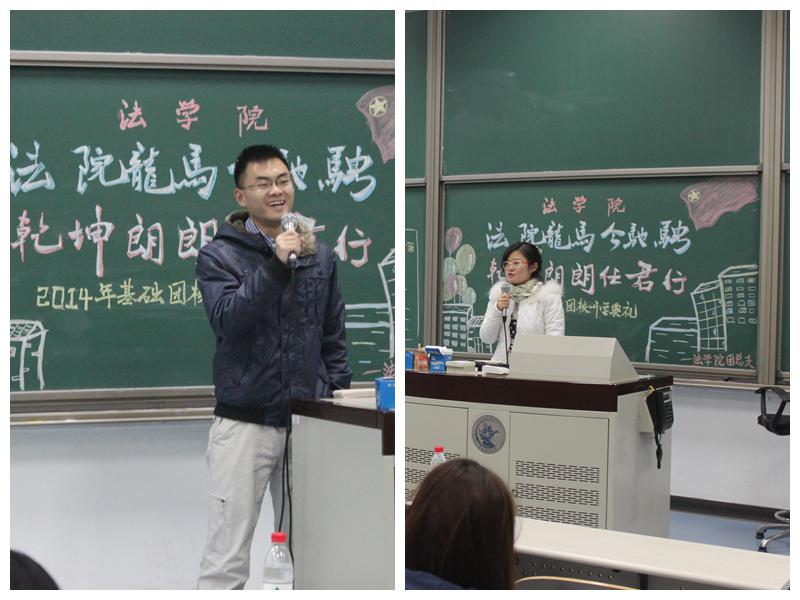 11月13日晚6点30分,由我院团总支学生会主办的“法院龙马今驰骋,乾坤朗朗任君行”——法学院2014年基础团校开学典礼在沙河校区西区主教101教室举行。我院团总支书记程曦老师和学生会全体成员参加了典礼。