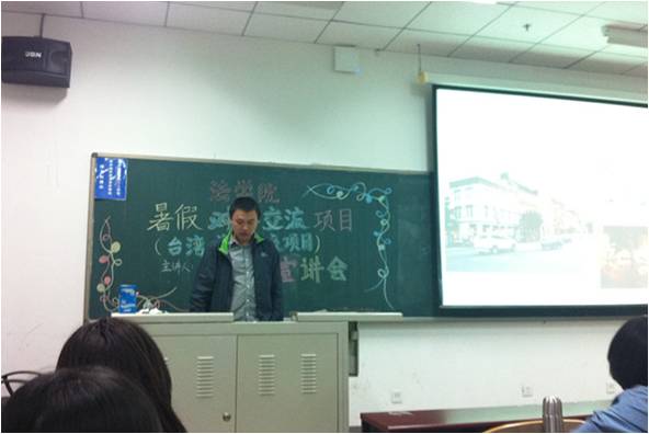 4月4日晚上6点30分,我院暑假对外交流项目(台湾、美国交流项目)宣讲会在沙河主教305教室举办。我院沈健博士、2011级党弘毅同学担任主讲人,为大家介绍暑期对外交流的相关情况,主要针对暑假有外出实习意向的同学。同学们踊跃参加,现场气氛十分热闹。