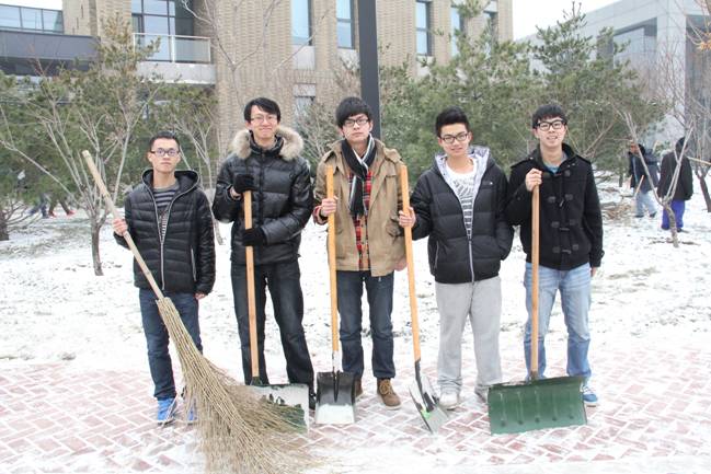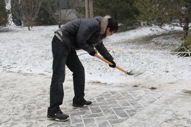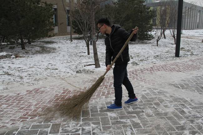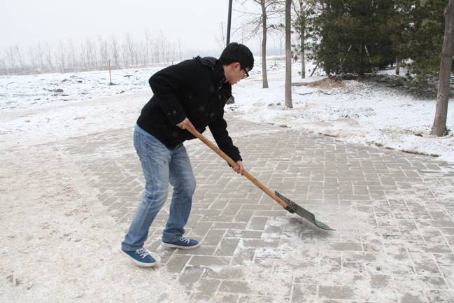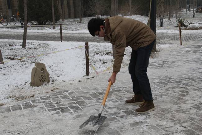 12月12日的一场大雪把校园装点得银装素裹、分外美丽,但雪停后道路上的积雪却给师生的过往出行造成了极大不便。13日下午,我院团总支书记李杰老师带领2011级的五位同学在学校分派各院的管理地区进行了积雪清扫工作。