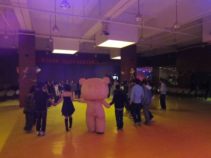 随着酷飞啦啦队充满青春活力的舞蹈,本次狂欢晚会在热闹的气氛中开始了。之后,“合力吹气球”的游戏在同学们的积极参与和参赛者的默契配合下成功地拉近了观众间的距离。未央舞蹈社带来的连舞和爵士独舞给同学们带来了视觉享受,而两位来自安可歌唱社的校园十佳歌手也为观众们带来了精彩的演唱,引起全场掌声连连。除此之外,光影动漫社还给观众带来了精彩的cosplay表演,演员还热情地与同学们拍照合影。在自由献唱和点歌的环节中,同学们不但听到了优美的歌声,品味了工作人员提供的精致点心,还收到了其他人对自己的祝福,气氛温馨而又甜蜜。最后,在“轻松熊”的带领下,到场的同学们步入舞池,围成一个大圈,伴着音乐的节拍跳起了轻松欢乐的“兔子舞”。至此,本次晚会正式结束。