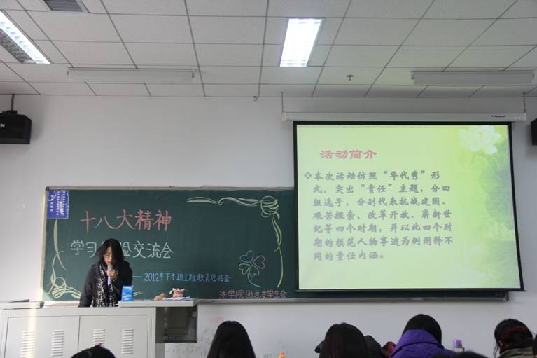 12月11日下午1:30,法学院团总支学生会在沙河校区主教305开展十八大精神学习经验交流会,暨2012年下半学期主题教育总结会。法学院团总支副书记11级毕钰同学、团总支组织部全体干事出席活动,11级、12级部分同学参加了本次活动。