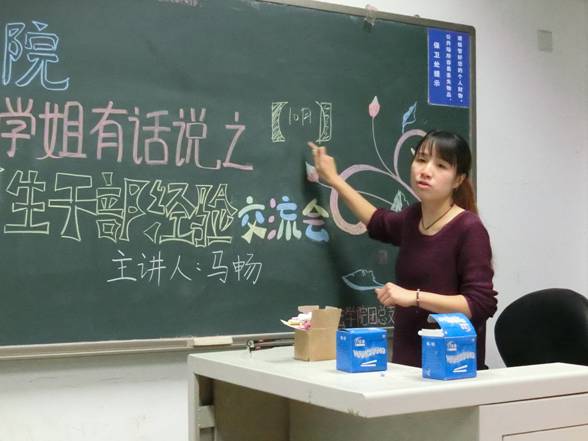11月7日晚6点30分,我院在三号学院楼124教室举办了学长学姐有话说系列讲座之学生干部经验交流会。本次讲座由2010级马畅学姐主讲。马畅学姐在大学中不仅学习成绩优异,而且工作能力也有目共睹,赢得了学校师生的一致好评。