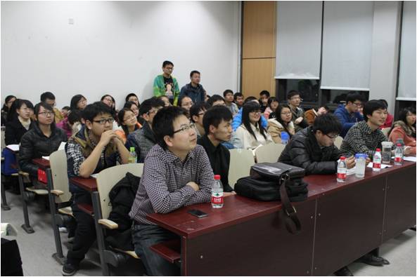 之后是大家答疑的环节,大家分别针对考研的时间分配、答题技巧、复习方法以及今后就业方向等方面提出了疑问,三位研究生同学耐心而细致地解答了同学们的问题。大家交流甚欢,现场气氛十分活跃。