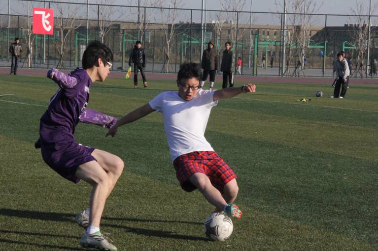 绿茵点亮梦想,激情舞动青春。11月28日下午2点40分,在沙河校区足球场,法学院与金融学院足球队进行了一场激烈的比赛。萧风瑟瑟,但场外观众热情不减,依旧为队员们呐威助喊着。