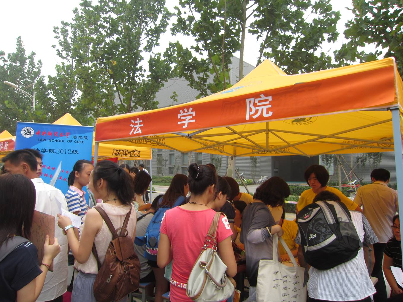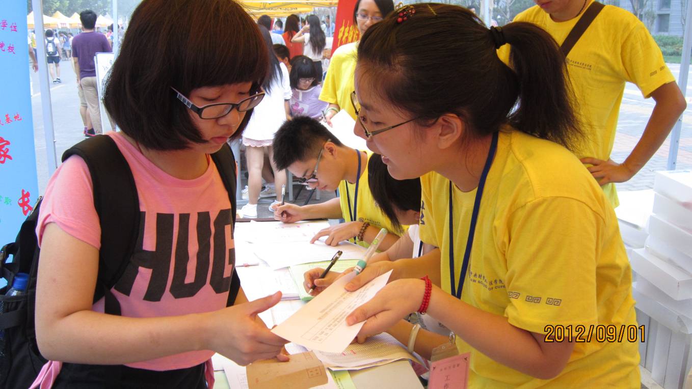 9月1日 ,我校开始了2012级本科生的迎新工作。我院党总支书记李岩老师、学生工作办公室主任吴垠老师、团总支书记李杰老师和2011级的团学骨干成员早早地来到了位于乾坤路上的新生报到处,做好迎接法学院2012级新生的各项准备工作。