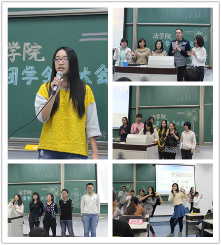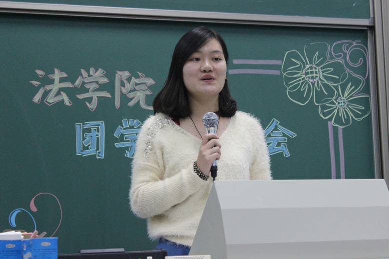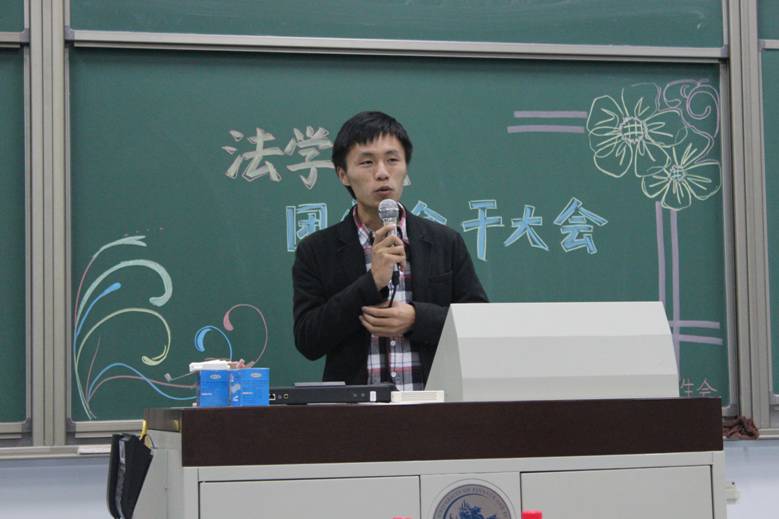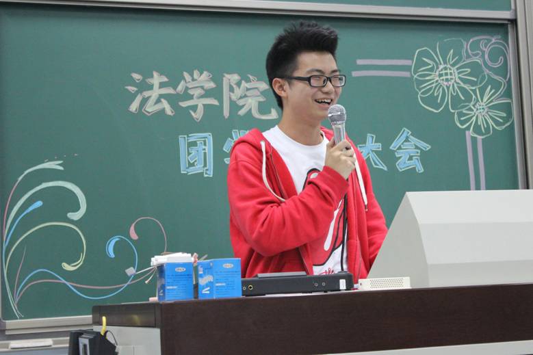 现任团学主席黄盛秦同学在讲话中提出了“大一,勿留遗憾”以警醒仍旧迷茫的新生们。在发言中,黄盛秦同学特别提到加入团学的重要性。他指出,院团学的工作与其他社团不同,每一次活动都是和本院同学一起开展,这就需要更加明确自己肩上的责任,从而更好地服务法学院。黄盛秦同学最后也希望每个人能培养自身全面能力,为团学增添新的光彩。