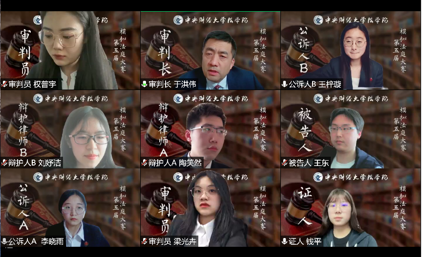4月23日下午,第五届模拟法庭大赛决赛于腾讯会议举行。法学院副院长李伟副教授出席,于洪伟老师担任审判长,2018年北京市大学生模拟法庭大赛二等奖暨最佳辩手梁光卉同学、2020年北京市大学生模拟法庭大赛二等奖暨最佳辩手权普宇同学担任审判员。2021级本科生陈婧茹同学主持,参赛队伍代表,2020级、2021级本科生共计200余人到场观摩。