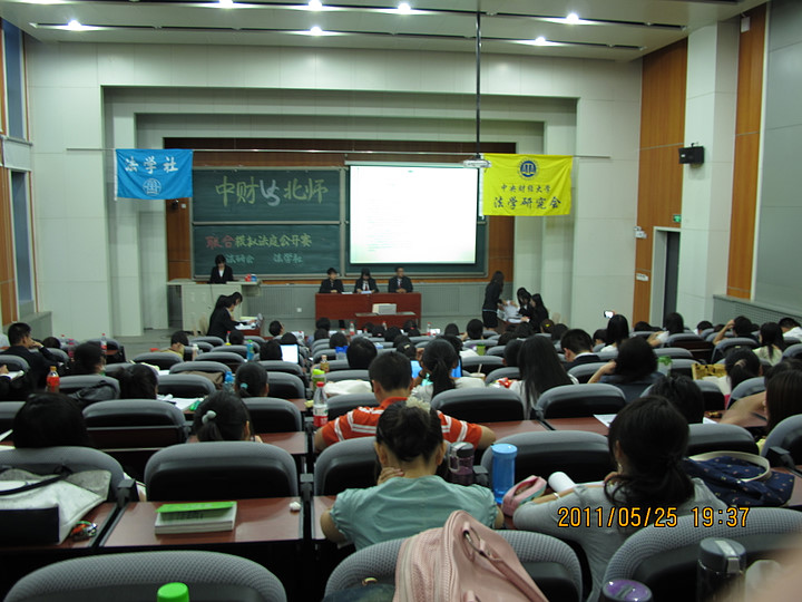 5月25日晚,由我院法学研究会与北京师范大学法学院法学社主办的模拟法庭友谊赛在沙河校区4号楼107教室举行,我院副院长刘双舟教授、北京岳成律师事务所岳屾山律师、我院李轩副教授、白斌博士、团总支书记李炎老师出席此次比赛并担任评委,两校主办社团、各兄弟社团代表及百余名同学观看了比赛。
