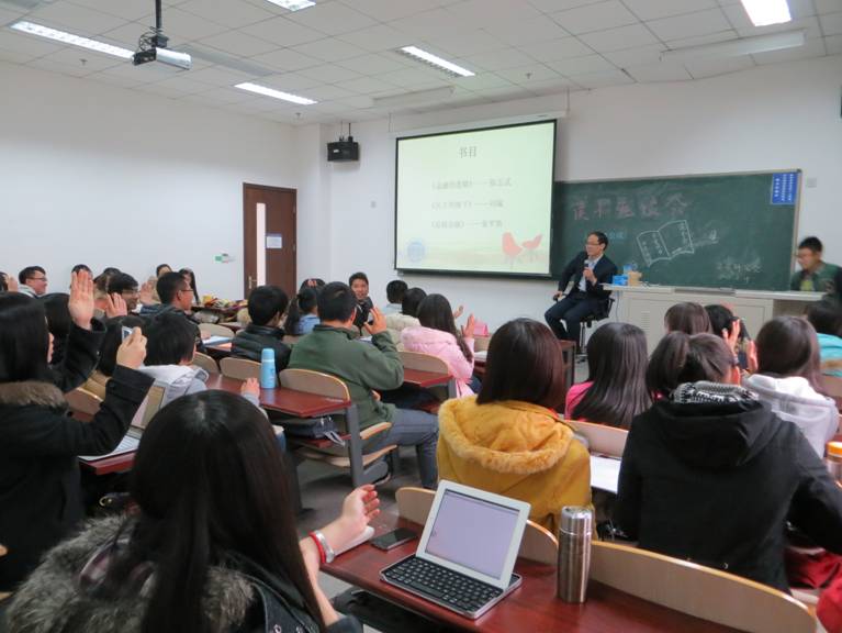 随后,就进入了本场座谈的核心环节。主讲人邢会强副教授主要介绍了三本推荐书籍,即陈志武的《金融的逻辑》、刘瑜的《民主的细节》和索罗斯的《超越金融》,并对每一本书都作了一些简要的点评。邢会强副教授说道,学生看书之前要先学会选择,要看有用之书、有价值之书,并且在选书之前,要对书的作者有所了解,只有这样,才能在书中学习到从未涉及过的广阔的知识。