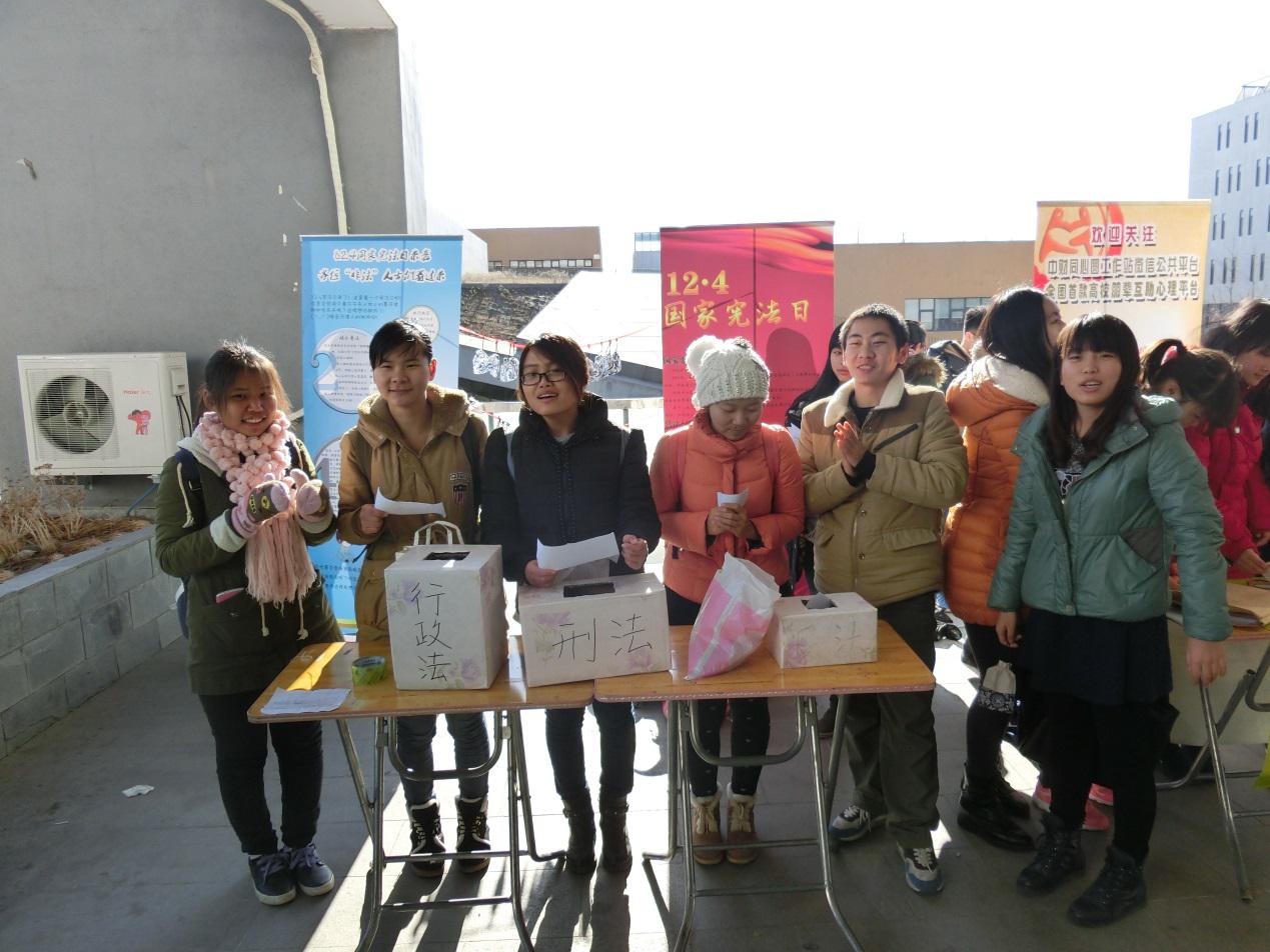 12月5日上午11点30分,由法学研究会举办的法制宣传周系列活动之“法律知识问答”在沙河东区食堂门口进行。