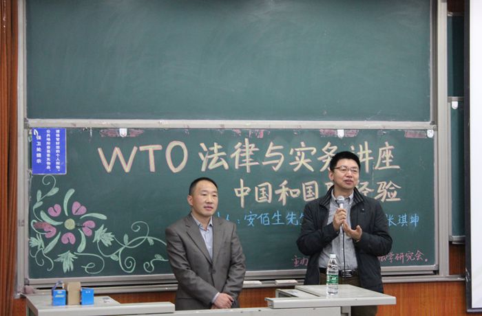 10月28日晚6点30分,由我院法学研究会承办的以“中国和国际经验”为主题的WTO法律与实务讲座在沙河校区7号楼115教室举行。本次讲座邀请了中国商务部世界贸易组织司的安佰生处长,我院行政负责人吴韬副院长、张旗坤副教授出席了本次讲座。