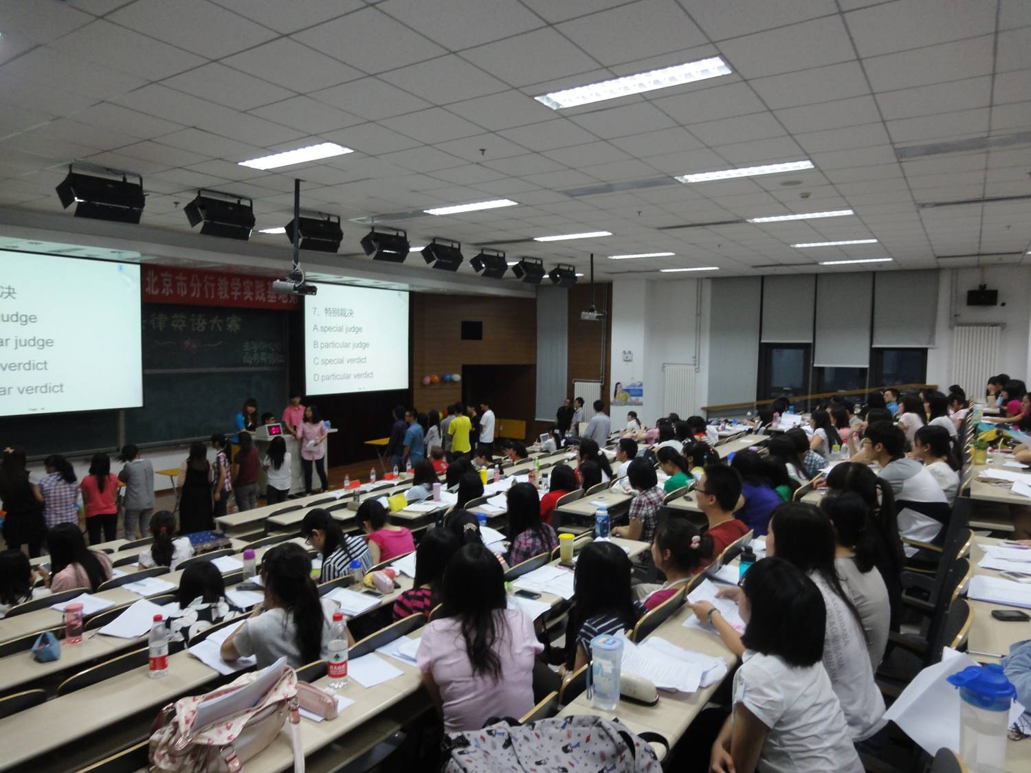 5月18日晚,法学研究会和商务英语社在沙河校区主教111教室联合举办了法律英语大赛。本次大赛特邀清华大学法学博士历咏、中央财经大学外籍讲师Martin以及哈佛大学学士、耶鲁大学法律博士Ting Wang担任评委老师,以4人自由组队的方式报名参赛,实时到场参赛队伍多达34支。