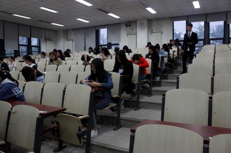 比赛伊始,主持人向参加比赛的同学说明了比赛注意事项和比赛规则,工作人员向到场的考生有序发放了试卷和答题纸,笔试环节正式开始。参赛人员仔细阅读试卷,全身心投入到对考题的分析中去,一边思索一边奋笔疾书,考试在紧张有序的氛围中顺利进行着。在比赛过程中,工作人员认真负责监考,比赛现场纪律良好。参赛选手们以自己认真细致的答题态度,沉稳从容的应考风格展现了当代中财学子求实创新的优良品格和动人风采。