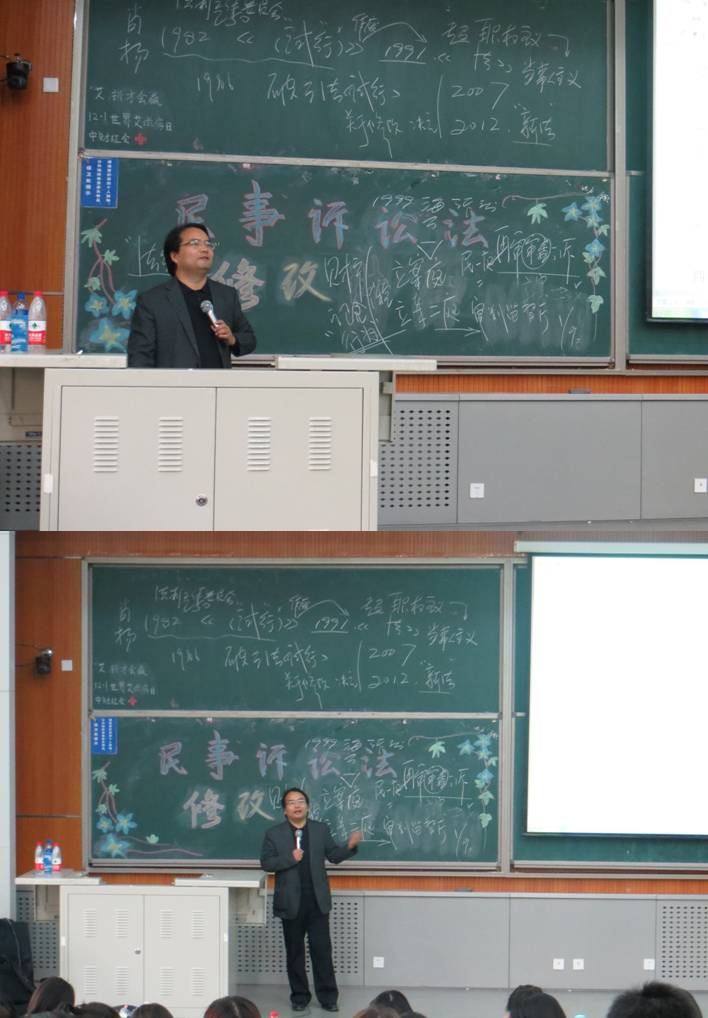 11月27日下午2:00,法学院法学研究会在4号学院楼107教室举办了关于民事诉讼法修改的讲座。主讲人为此次参与《民事诉讼法》修改的法学院李轩副教授,法学院10、11、12级同学参加了此次活动。