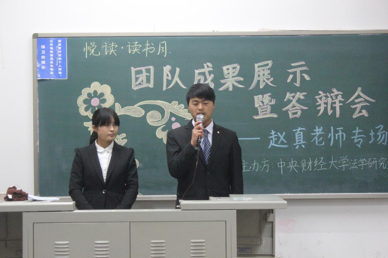 11月27日晚6点30分,由我院法学研究会主办的 “悦读•读书月”团队成果展示暨答辩会第三场在沙河校区主教305教室举行。本场活动邀请到了法学院赵真老师担任点评老师。