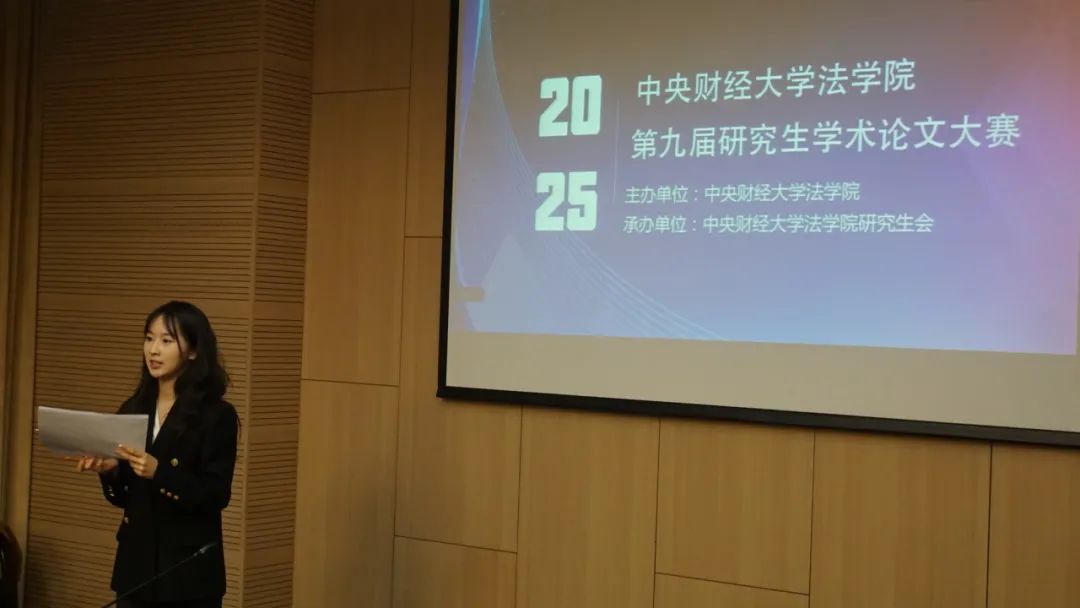 2025年3月7日,中央财经大学法学院第九届研究生学术论文大赛决赛成功举办。本届论文大赛共收到来自北京大学、清华大学、中国人民大学、浙江大学、武汉大学、北京师范大学、南京大学、中山大学、上海交通大学、吉林大学、南开大学、中国政法大学、对外经济贸易大学等全国多所著名高校以及中央财经大学法学院的347篇稿件,历经初审、复评,最终有18篇作品进入终审答辩阶段,终审答辩采用“线上+线下”相结合的形式举行。
