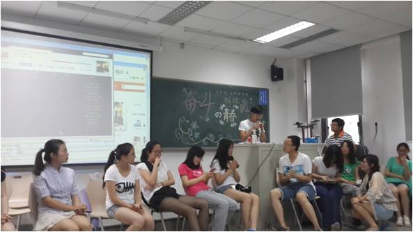 “五四的火炬,唤醒了民族的觉醒。壮丽的事业,激励着我们继往开来。”中国共青团团歌的悠悠旋律拉开了五四主题团日活动的序幕。接下来,由我班团支书主持并进行了本次活动的首个内容——“破冰之旅”。参与活动的同学将随机被分为若干小组,每组发放一支笔,然后在各组中按序号互相传递皮球,接到皮球的同学要说出抛球者的名字。完成记忆任务的小组,将笔上交。逐个小组检查记忆效果。最后比较各组全部说完组员名字且正确的时间,并对时间最长的小组进行惩罚。同学们积极投入活动,认真记忆陌生同学的名字,活动渐渐形成轻松愉快的氛围。比赛开始后,各组出色的表现让竞争异常激烈。尤其是第一组成员表现最佳,不仅记忆准确,而且用时最短。而用时最长的第四组派组内一名成员表演口琴吹奏,一曲《那些年,我们追过的女孩》赢得在场同学的热烈掌声。“破冰之旅”活动既促进同学之间的了解,又增进同学之间的友谊。