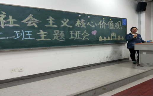 首先,潘琦老师简单介绍了此次班会的主要内容及意义,之后详细介绍了社会主义核心价值观的提出的时代背景、基本内容等基本概念,让同学们初步认识到社会主义核心价值观。