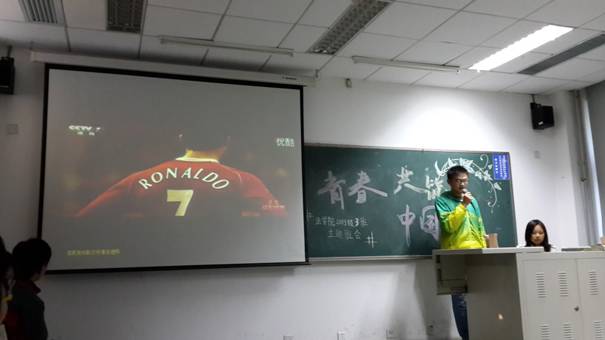本次班会主持人为王济敏、张伟、伍可盈、张正虎四位同学,在进行了幽默而简洁的开场白后,班会正式开始。首先,由女生819宿舍的四位同学合唱了一首名为《当》的流行歌曲,耳熟能详的旋律回荡在教室中,引起在场同学们的共鸣,同学们纷纷随之和唱,现场的气氛迅速升温。曲毕后掌声雷动,喝彩不断。接下来是琚京丰同学带来一段精彩激昂的关于做真正男人的演讲,整个幻灯片展示以C罗为核心人物,并搭配着丰富多彩的视频资料,生动有趣又不乏激励奋进,凸显出青春二字的意义与价值。在主持人诙谐的介绍后,有一组表演精彩上演。女生828宿舍的三位同学分别用热情洋溢的现代舞、清脆婉转的竹笛独奏、抒情优美的扇子舞来展现青春的多姿多彩,让同学们称赞不断。“台上一分钟,台下十年功”,同学们为了本次主题班会都精心准备,用高涨的热情支持响应,促成本次主题班会的顺利召开。