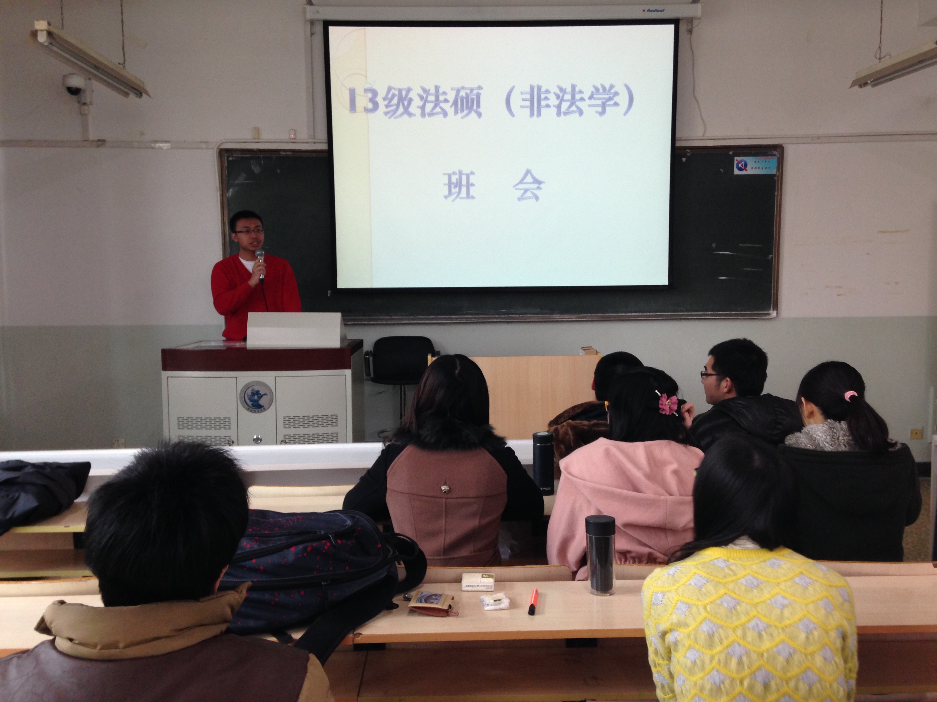 2014年3月7日下午,2013级法律硕士(非法学)全体班委会、团支部以及党支委成员在主教210召开了2013-2014学年下学期第一次班委会。