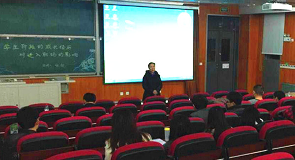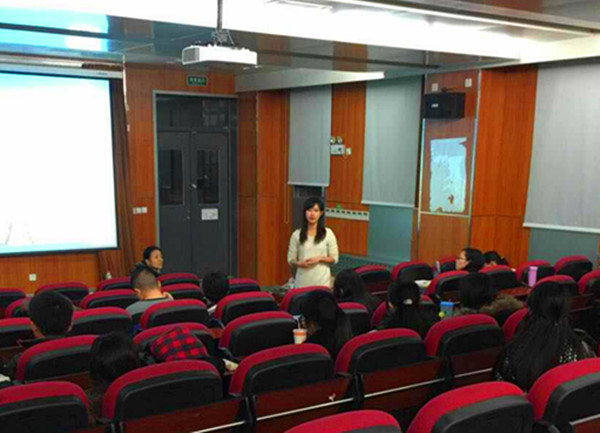 蒙老师首先对张超的到来表示感谢,并就学姐的精彩经历向同学们做了简单介绍;随后,蒙老师指出本次活动旨在与学院、与导师共同多维度打造学生,通过校友的分享,帮助研究生新生找准定位,确定相对长远的规划,在研究生阶段全面提升自己。