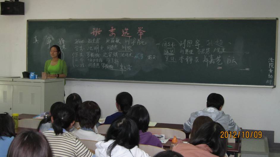 10月8日至10月9日,2012级法学院的3个班在分别沙河主教507、509举行了各自的班委选举。本次班委选举,由辅导员李杰老师主持,3个班的全体成员和各自的班级助理到场参与了本次选举。