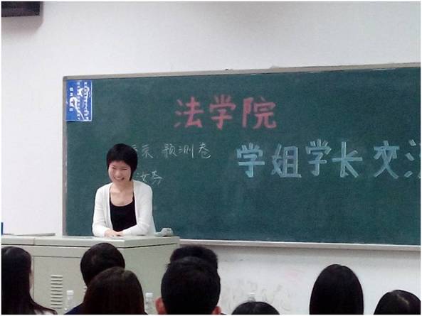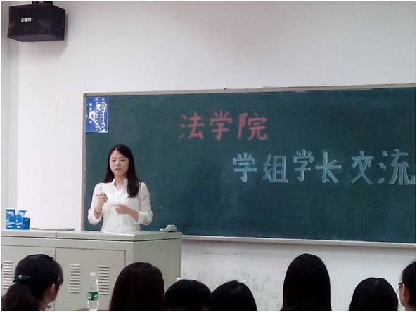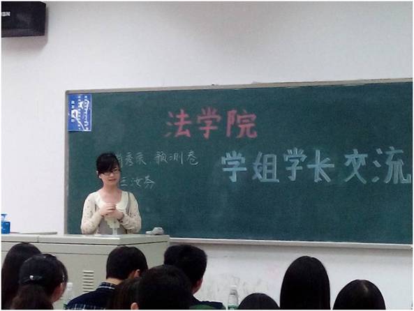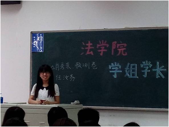 首先与同学们分享经验的是考到我院经济法专业的陈常佳子同学,她首先向在座的同学们介绍了今年我校该专业的研究生报考情况以及录取情况,接下来又和大家分享了她对于英语、政治、专业课等科目的复习心得及体会。此外,陈常佳子同学还在详细介绍的过程中向大家推荐了肖秀荣的真题、预测卷,以及任汝芬的复习资料,拓宽了同学们获得宝贵学习资料的渠道。