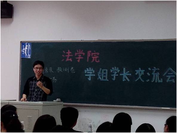 接下来考入我院国际法专业的戴思桦同学主要强调了同学们在心理方面应做好的准备,他指出:考研是“有目标、有想法,就有动力”,并且详细介绍了自己在考研过程中的心路历程。此外,戴思桦同学推荐同学们在复习地点的选择上,应当首选自习室等有学习氛围的地方、选择合适的“研友”互相督促、共同进步。