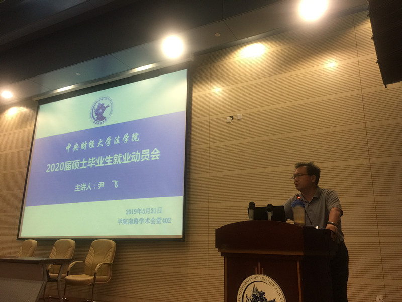 2019年5月31日晚,法学院在学术会堂402报告厅召开2020届研究生毕业生毕业就业动员会。院长尹飞教授、副院长李伟副教授、院学工办负责人尹力沉老师出席会议。全体2020届研究生毕业生参加动员会。